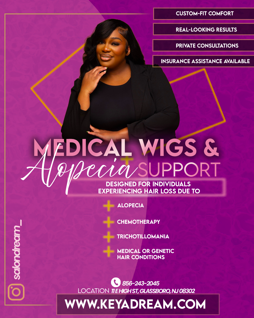 If you’re experiencing hair loss due to alopecia, chemotherapy, trichotillomania, or a medical/genetic condition — you’re not alone, and you don’t have to face it without options.At Salon Dream, we specialize in medical wigs designed to restore confidence with custom-fit comfort and real-looking results.